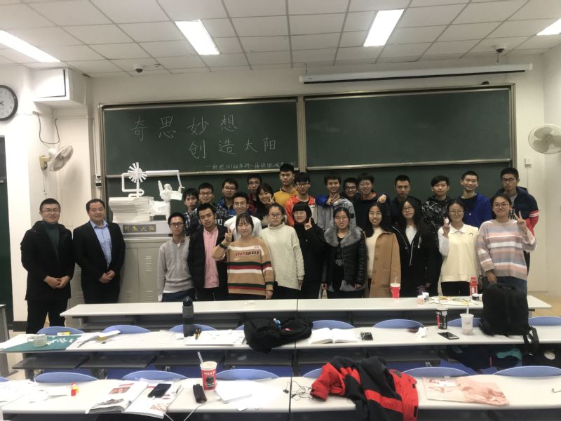 正值第二十七届老员工科技节开展之际,为增强创新意识,促进同学之间团结合作,11月25日下午,材料成型及控制工程1801班与本研一体(机械类)1801班于东环302教室联合举办创新类主题团日活动——“奇思妙想,创造太阳”。本次活动由两班团支书马旭、肖悦共同主持,要求两班同学按比例制作模型。辅导员徐拥军出席本次活动。