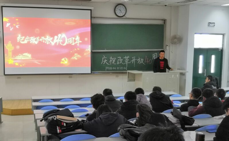 活动伊始,李寿玺讲解改革开放的背景,并带领同学们从10个方面共同回顾“建设具有中国特色社会主义社会”的改革开放历程。同时,他和与会同学一起分享了习主席在改革开放40周年大会上总结的9大经验,并展望改革开放的未来。最后,李寿玺呼吁大家不忘初心、牢记使命,认清自己的历史使命,明确成才的目标,确立为国家、为民族奋斗的志向,努力成长为对党和国家、对人民有所贡献的人。