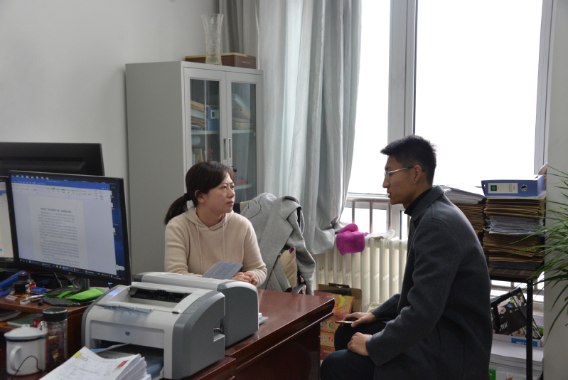 公司团委书记王佳约谈员工组织负责人,为新学期员工工作做好铺垫。