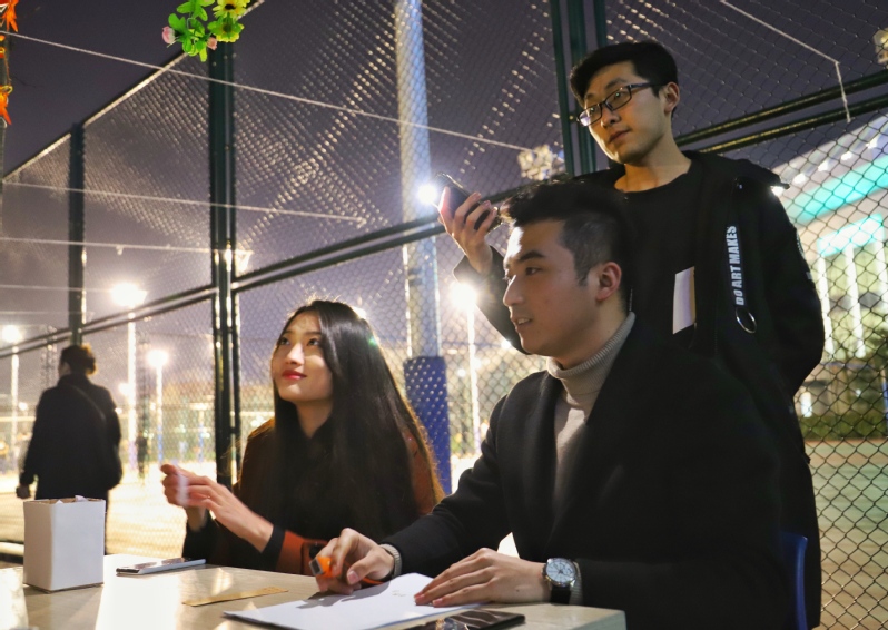 本次思美节花灯会活动分为“赏花灯”和“猜灯谜”两个部分。活动开始前,每位参与者在签到处领取花笺卡一张,进入会场后摘取悬挂在花藤上的灯谜。现场共三百道灯谜题目,灯谜涉及历史、科教、诗词等方面的基础知识。与会者可随意挑选题目,通过猜灯谜的形式收集“皎兮”、“皓兮”、“照兮”三类字章,集齐足够字章便可持证件与花笺卡向负责人兑换礼品花灯。荧荧花灯,点点星坠。女生们在欣赏花灯的同时,随手摘下花藤下悬坠的灯谜,此情此景,正如《诗经》中“月出皎兮,佼人僚兮”一般,女性之美霎时绽放。