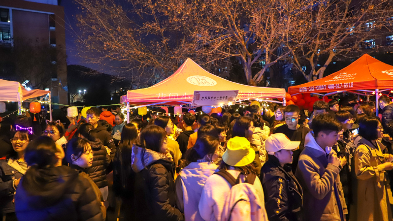 纵观活动现场,能吃又能玩的制作棉花糖活动周围聚集的人最多。“参与制作棉花糖女生偏多,还有一些家长带着孩子都来体验活动。”负责这个活动的王展飞同学说,“整个活动忙下来不知道做了多少个棉花糖,累并快乐着。”