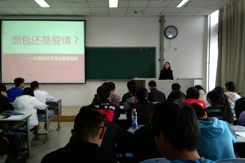 宣讲员陈晨以“放宽视野、理性选择:新时代新青年的职业规划思考”为主题展开宣讲。陈晨以当下就业新形势、新变化为切入点,分析职业规划时需要考虑的各方因素,为同学提供切实可行的择业与就业建议,提高了同学对职业规划的重视程度,帮助同学树立良好的就业观。随后,宣讲员刁玉娟带来“面包还是爱情”主题宣讲。宣讲员从择偶标准、择偶方式、妇女地位、离婚观等方面分析上世纪六十年代至二十一世纪人民群众婚姻观的发展变化,提出了“‘面包’和 ‘爱情’哪一个更重要”这一热门论题,并借用马克思、莎士比亚的名言向同学宣扬正确的恋爱婚姻观。与会员工积极参与讨论。