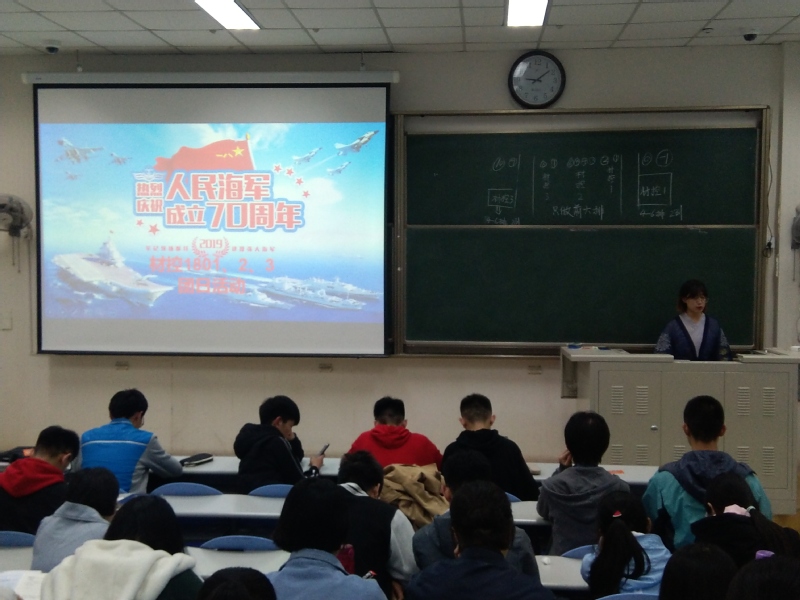 为纪念海军建军七十周年,增加同学们对人民海军的了解,宏扬爱国主义精神,材料成型及控制工程1801、1802、1803团支部于4月19日晚在东环207教室开展“七十风云掀巨浪,志伴军魂与沧桑”主题团日活动。
