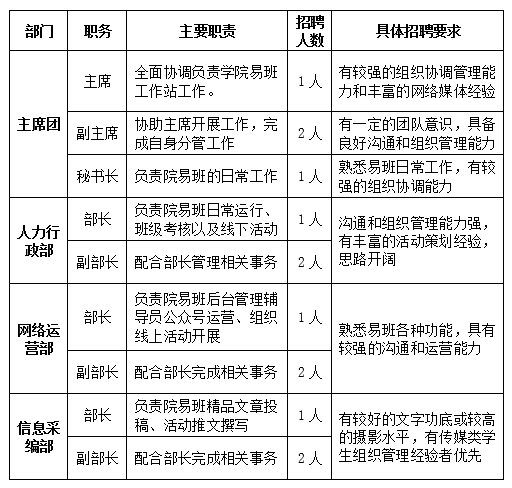 4.各班级积极向院易班推荐优秀竞聘者,推荐对象包括各类员工组织及班委成员。