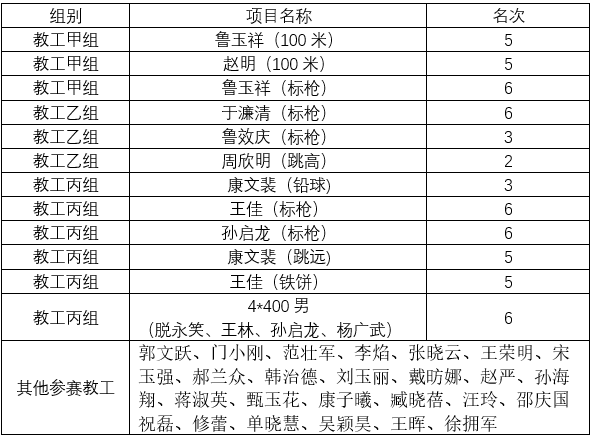 经过两天激烈的赛场角逐,材料学院荣获了运动会最高荣誉“经理杯”(年度员工体育成绩前六名单位),取得了员工甲组团体总分第六、员工乙组团体总分第七、员工团体总分第六及教工组优秀组织单位、员工组体育道德风尚奖等多项荣誉称号。荣誉获得的背后离不开学院师生的汗水与坚持,学院师生齐心协力,在运动会上赛场上赛出了成绩、赛出了风采。