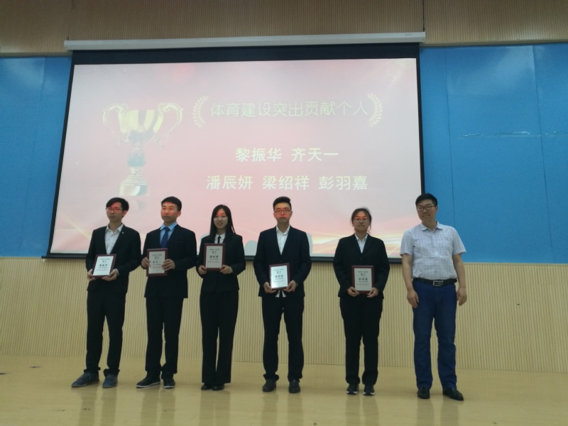 表彰大会伊始,孙启龙宣读了《关于表彰2018—2019年度体育建设先进集体和个人的决定》。2018—2019年,学院从零开始,在体育建设方面涌现出大批优秀个人和先进集体,在各类体育赛事上取得佳绩,并为学院体育建设发展做出卓越贡献。学院在全院范围内,评选出体育建设突出贡献个人5名,团队体育之星4人,体育建设突出贡献团队4个,体育建设特殊贡献团队4个,体育建设特殊贡献个人9名,体育建设优秀先进个人7名,体育建设优秀先进团队10个,体育建设积极参与个人7名以及体育工作优秀志愿者10名。