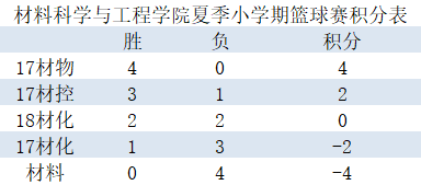 比赛历时一周,各支队伍展现出顽强意志,为观众奉献上精彩的表现。最终,2017级材料物理专业四战全胜积四分位列第一,2017级材料成型及控制工程专业与2018级材料化学专业分别积两分、零分位于为第二、三名。比赛双方本着“友谊第一,比赛第二”的原则,在赛后进行友好交流。其中材物1701班员工陈君益赛后说道,“通过比赛增长了我们队伍内部的默契,更增加了专业之间的交流,给更多爱好体育的人更多的舞台”。