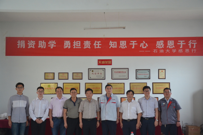 7月17日,威廉希尔足球官方网站赴山东东营天威石油科技有限公司、施普瑞石油科技有限公司进行回访以及开展感恩行活动。威廉希尔足球官方网站党委书记门小刚、党委副书记孙启龙、学院科技成果转化办公室主任胡松青教授、辅导员徐拥军以及奖学金获得者员工代表参加了此次活动。