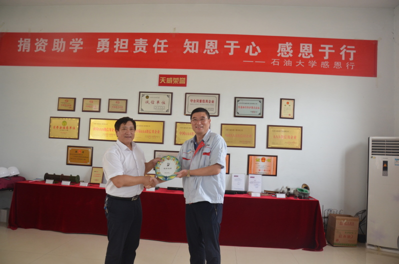 此次活动,不仅有助于培养员工感恩之心,而且加强了校企合作。2018年6月8日东营天威防腐工程有限公司向威廉希尔足球官方网站捐赠10万元奖学金,资助材料物理、威廉希尔足球官方网站的全日制在校本科生和研究生,优先资助从事腐蚀防护方向的优秀贫困老员工。2018年10月24日,东营施普瑞石油工程技术有限公司向威廉希尔足球官方网站捐赠20万元奖学金。企业奖学金的设立,旨在激发广老员工的学习积极性和创造性,营造优良学风,培养员工成为知识、能力、素养全方面发展的人才。
