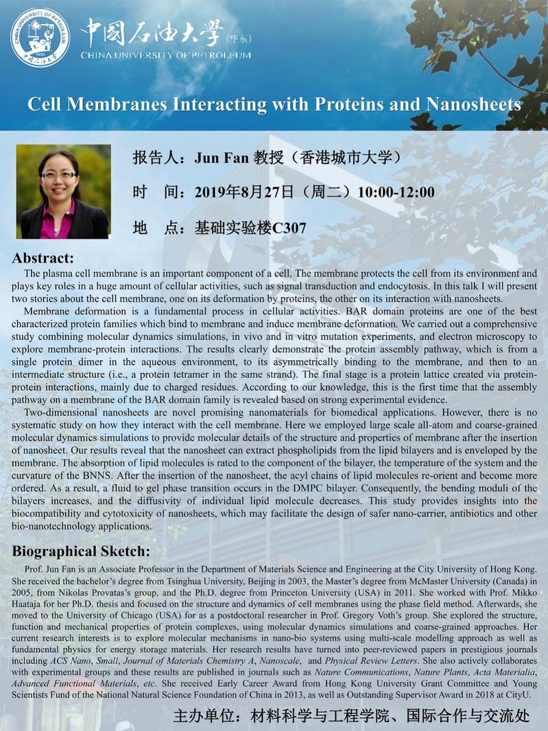 10:00-12:00 学术报告:Cell Membranes Interacting with Proteins and Nanosheets