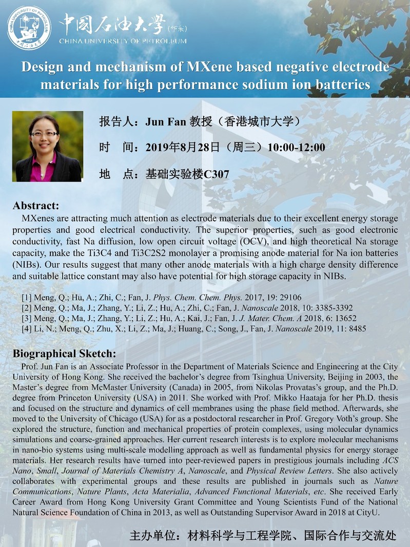 10:00-12:00 学术报告:Design and mechanism of MXene based negative electrode materials for high performance sodium ion batteries
