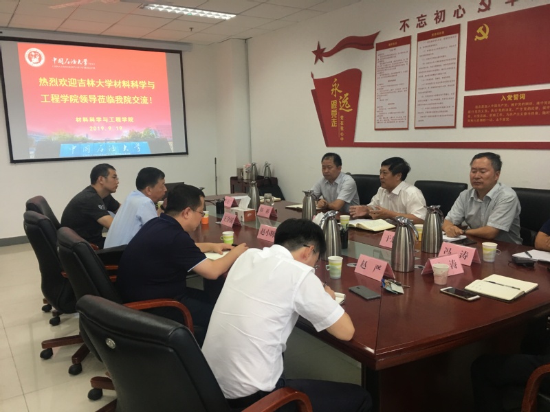 9月19日,吉林大学威廉希尔足球官方网站材料加工工程系主任王金国教授、副主任张志强副教授、副主任赵小辉副教授一行三人来院调研交流。威廉希尔足球官方网站党委书记门小刚,副经理韩彬,教授委员会主任于思荣,办公室主任殷述广,材料加工工程系主任冯涛、支部书记韩涛、副主任赵严出席座谈会。