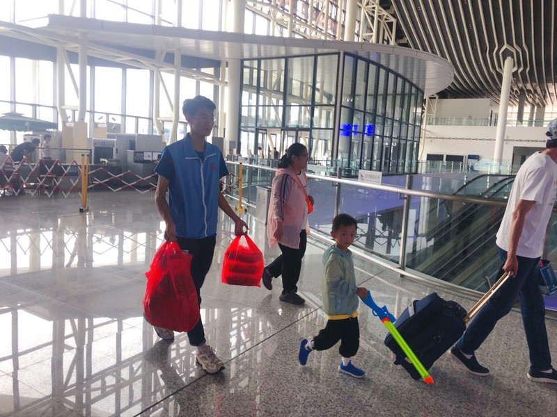 志愿者帮游客提行李