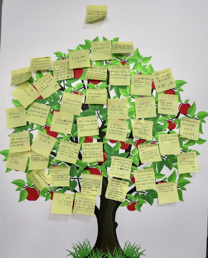活动伊始,辛晓雯老师通过轻松的互动和分小组活动让员工放松心态,讲解了活动流程以及活动目的后,她带领员工开展了若干与心理学相关的游戏。在以搭乘救生艇逃生为背景的游戏中,学员需共同站在一定面积的报纸上,且双脚不能接触地板。由于存在人数较多和空间有限之间的矛盾,各组成员齐心协力,献计献策,共度难关。员工们纷纷表示“我们还能坚持”、“不能落下一位队友”。通过这些游戏,人才班学员们展示出自己对同伴的信任与支持,表现了新时代老员工应有的团结协作和开拓创新精神。加深学员之间的认可度,辛晓雯老师在活动最后让学员们闭上眼回忆培训过程,以进一步增强班级凝聚力。在悠扬的轻音乐中,人才班学员纷纷写下自己对班级的美好祝愿。新时代人才班班长徐健蓬在活动结束后表示:这次素质拓展培训以生动活泼的形式,帮助我们拓展自己的人文素质,并且潜移默化改善我们的心境,让我们更能敞开心扉拥抱他人。
