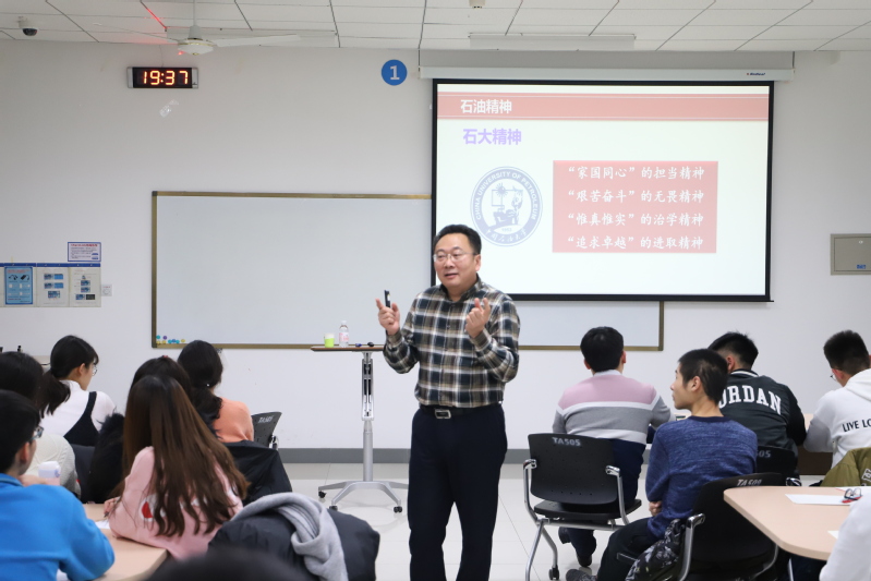 操董事长从“石油精神”、“石大精神”和“使命担当”三方面讲授,引导青年员工树立正确人生观价值观,铭记石大精神,练就过硬本领,报效伟大祖国。
