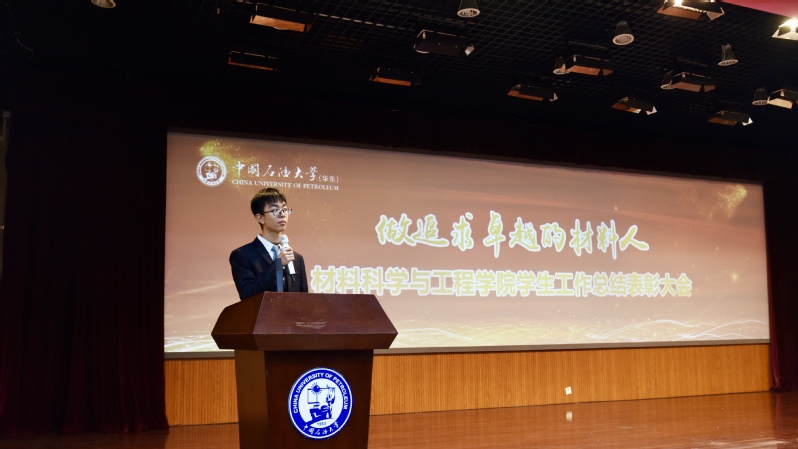国家奖学金获得者、材物1802班孙健涵作为获奖员工代表发言。他结合自身的成长经历,感谢学校、学院在学习、科研、实践、员工工作等方面为莘莘学子提供的广阔平台,表示作为新时代的材料人,有责任也应该有能力成为更好的自己,为建设国内一流、具有重要国际影响的研究型学院贡献青春力量。