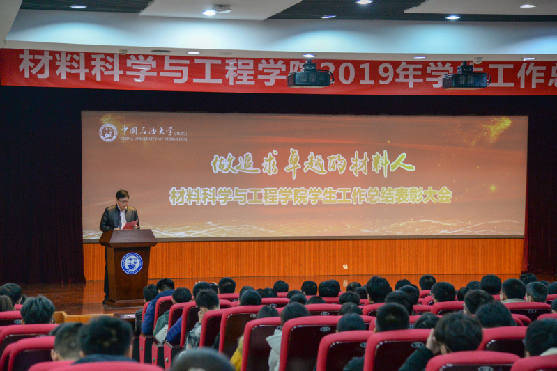 12月12日下午,威廉希尔足球官方网站于逸夫礼堂召开 2019年度员工工作总结表彰大会。学校员工就业指导中心主任王林,武装部部长李涛江,团委书记张展,党委员工工作部员工资助中心主任陈熙,学院领导班子成员,各系主任和系党支部书记,班主任代表出席大会,全体辅导员及2019级本科生、研究生参加会议。东营天威防腐工程有限公司、东营施普瑞石油工程技术有限公司、北京安泰信科技有限公司等设立奖学金企业领导受邀参加大会。