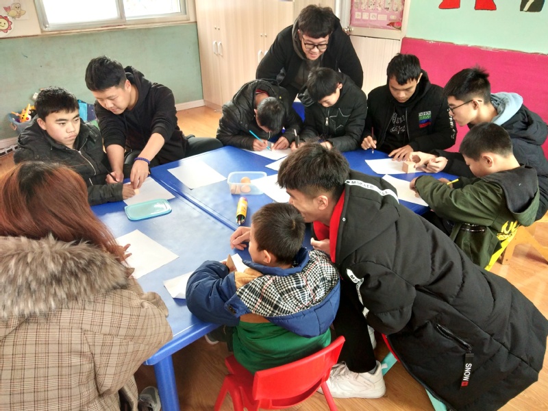 2003年,在黄岛区残联的支持下,石清娟出资成立了黄岛区聋儿语训中心。在接近两小时的车程后,志愿者们来到黄岛区聋儿语训中心。活动期间,志愿者们先为孩子们送上纪念品,接着分组带领他们画画、折纸。志愿者们鼓励对画画感兴趣的孩子画出多彩的图案,引导孩子学习折纸,同时为加强语训中心孩子们的动脑能力,志愿者们还带领他们学习魔方的还原方法。
