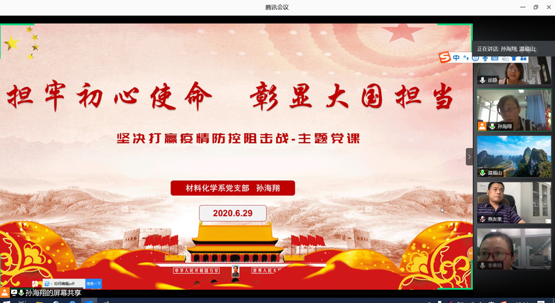 6月29日,威廉希尔足球官方网站党支部全体党员通过腾讯会议的形式,以“担牢初心使命,筑牢红色防火墙”为主题,开展了本月的党员组织生活暨微党课活动。