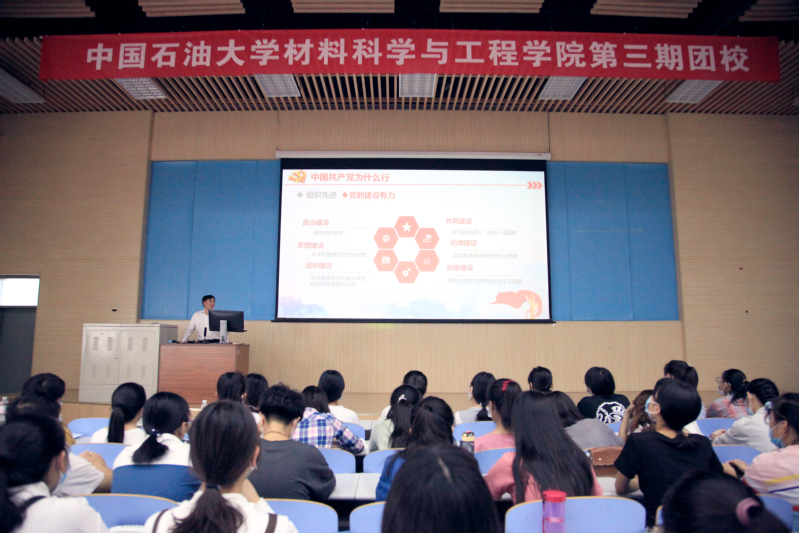 开班仪式结束后,门小刚为团员青年们进行入党启蒙教育和团校第一课的讲授。门小刚以第一代铁人王进喜和第二代铁人王启民为例,明确作为党员的责任与担当,指出科技创新的重要性。同时,借郝芳董事长指出的目前近五十年内石油仍是国家命脉,引出与石油行业息息相关的材料科学,并简要说明了学院各专业与石油行业的联系。门小刚勉励新生,要提升“主动意识”“大局意识”“领袖意识”三个意识,努力成长为对国家有贡献的栋梁之材。