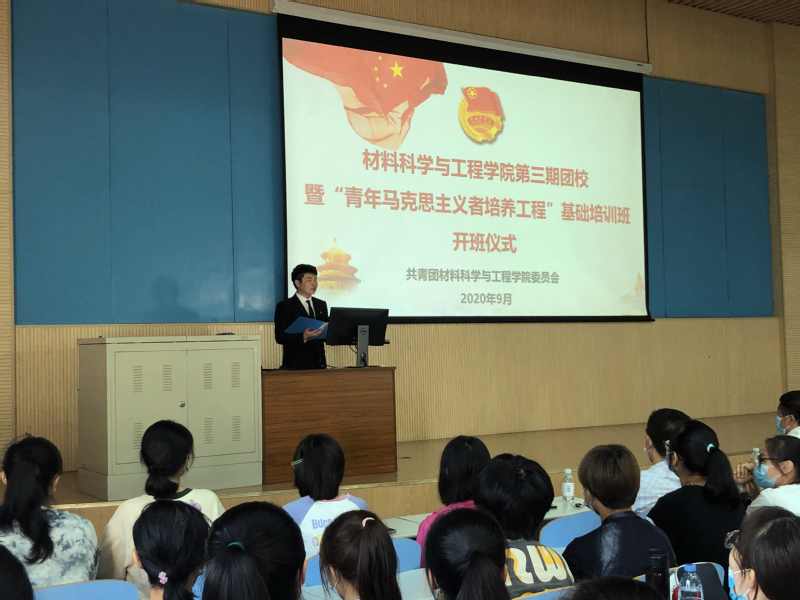 开班仪式伊始,全体起立齐唱国歌。随后,由员工代表宣读《材料学院团校纪律及考核要求》,明确团员青年参加团校等会议的纪律要求。王佳也在讲话中介绍了学院团委成立以来取得的各项荣誉,以及团员应承担的使命与责任。开班仪式在全体团员掷地有声的入团誓词和激情澎湃的团歌声中结束。