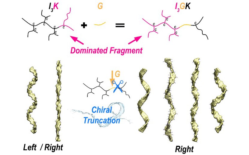 螺旋,是一种在生物学(如在DNA及多种蛋白质)上常见的结构,其在生命活动中起到至关重要的作用。短肽自组装螺旋是其中的一个重要结构之一。对于短肽自组装体系而言,氨基酸的手性一般被认为是控制多肽自组装超分子结构的关键因素。一般认为,超分子的手性和宏观螺旋是由其自组装单体堆积过程中的不对称的相互作用造成的,但是目前很难理解分子水平的手性是如何发展到超分子水平上的。探索氨基酸手性对肽自组装纳米结构手性的影响,揭示其中分子水平到超分子水平的结构演化机制,成为亟待解决的关键问题。将纳米尺度手性与微米尺度螺旋手性进行科学有效地关联也成为该领域的重要挑战。通过结合系统地实验观测、分子动力学和量子化学计算,本论文提出,超分子螺旋手性在其单分子构象形成时就已经决定,并且通过理论计算给出了单分子手性逐渐演化到超分子手性过程;此外,提出了甘氨酸在短肽自组装过程中的chiral truncation(手性截断)效应。研究成果为深化对螺旋手性分子尺度演化的认识、理解短肽分子自组装演化机制提供了重要的理论依据。