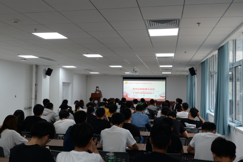 王宁开展题为《关于山东的烽火记忆》主题宣讲,她带领大家从山东印象开始,了解了厚重山东、革命山东、烽火山东。山东是中华文明重要发源地之一,齐鲁文化名人辈出;从1922年王尽美和邓恩铭在山东成立最早的党组织,到铁道游击队,再到沂蒙六姐妹,山东革命精神荡气回肠;徂徕山抗日武装起义、孟良崮战役、济南战役、淮海战役,山东人民都贡献出了自己最大的力量,王宁带领全体同学认真学习了齐鲁大地的烽火记忆,引导全体同学自觉扛起弘扬红色精神、传承红色基因的使命担当,为实现伟大的中国梦而奋斗。