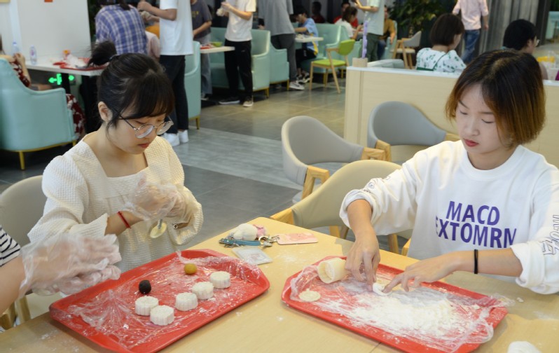 公司研究生会联系古镇口校区观海苑餐厅组织在校研究生制作月饼,同学们亲自动手制作冰皮月饼,制作完成后由餐厅加工,同学们动手参与,拉开了联欢会的序幕。随后的才艺表演为同学们提供了展示风采和发挥特长的平台,《后来》、《等你下课》、《暖暖》等一首首耳熟能详的歌曲,乐器演奏、舞蹈、串烧、脱口秀等各种形式的才艺表演点燃了联欢会高潮,受到同学们的一致好评。整场联欢会持续了近两个小时,歌声、乐声、欢笑声充斥着整个古镇口校区校园,为节日增添了别具一格的祥和气氛。