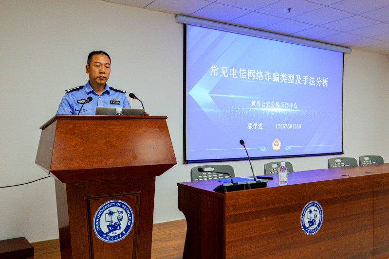 为进一步增强研究生防范电信网络诈骗意识,提升识诈、防诈能力,9月28日下午,威廉希尔足球官方网站在古镇口校区新能源大厦236报告厅开展了研究生安全教育系列活动第一期——防范电信网络诈骗专题教育。青岛市公安局黄岛分局反诈中心一级警长张学进应邀做专题报告,威廉希尔足球官方网站党委员工工作部(武装部)副部长周世光、青岛市公安局黄岛分局警官秦淑娴出席活动,古镇口校区2021级研究生参加报告会。