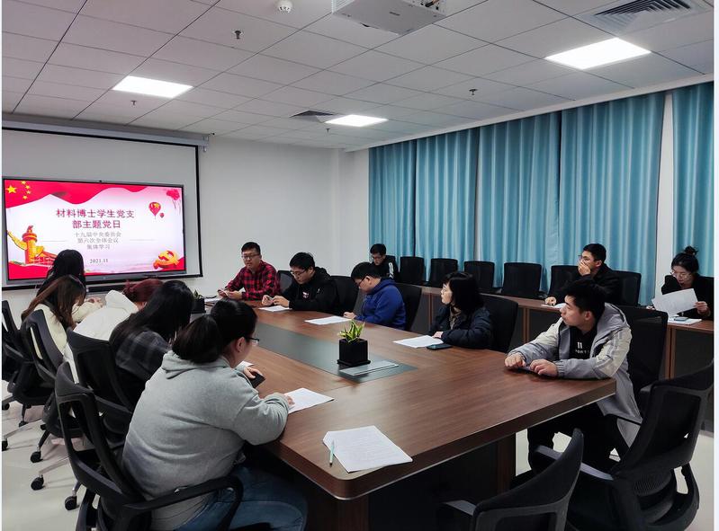 11月26日,材料博士生员工党支部在古镇口校区新能源大厦252会议室组织集体学习党的十九届六中全会精神,集体学习《中共中央关于党的百年奋斗重大成就和历史经验的决议》(以下简称《决议》),同时积极交流了学习心得与体会。