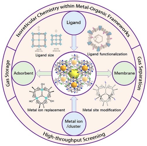 1.晶态多孔材料的结构设计及其在气体吸附分离领域的应用。