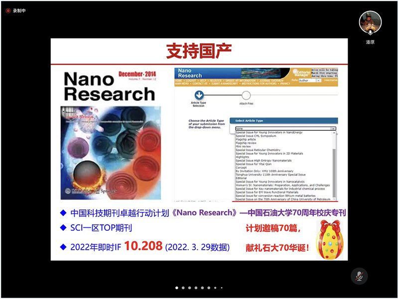 为关注材料领域发展前沿、关注青年教师成长,加强师生交流,威廉希尔足球官方网站青年教师发展促进会于4月2日上午举办了第二期优秀青年学者论坛。本次论坛采用云端视频方式召开,化学化工学院潘原副教授、威廉希尔足球官方网站黄毅超特任教授应邀作学术报告,论坛由曹宁副经理主持。