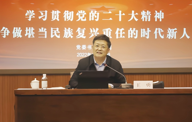 王勇书记指出,党的二十大是在全党全国各族人民迈上全面建设社会主义现代化国家新征程、向第二个百年奋斗目标进军的关键时刻召开的一次十分重要的大会,学习宣传贯彻党的二十大精神,要牢牢把握过去5年工作和新时代10年伟大变革的重大意义,牢牢把握新时代中国特色社会主义思想的世界观和方法论,牢牢把握以中国式现代化推进中华民族伟大复兴的使命任务,牢牢把握以伟大自我革命引领伟大社会革命的重要要求,牢牢把握团结奋斗的时代要求,做到全面学习、全面把握、全面落实。结合学校发展实际和立德树人根本任务,王勇书记强调,要深刻理解党中央将教育、科技、人才进行“三位一体”统筹安排、一体部署的战略意义和深远影响,充分发挥好高校作为科技第一生产力、人才第一资源和创新第一动力的重要结合点的独特作用;要深刻理解当代青年的使命任务与责任担当,教育引导员工坚定不移听党话、跟党走,怀抱梦想又脚踏实地,敢想敢为又善作善成,立志做有理想、敢担当、能吃苦、肯奋斗的新时代好青年。