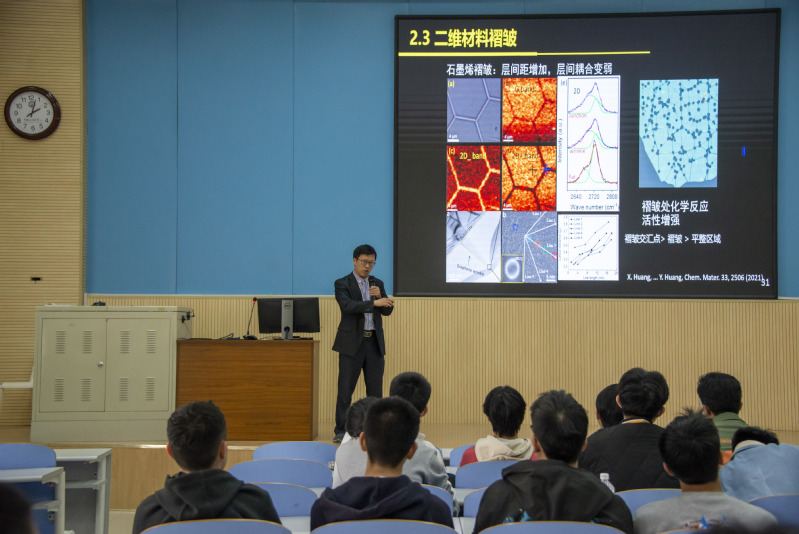 会议伊始,黄元围绕“从二维材料到地质和生命起源的科学交响曲”,从科学发展的普遍规律出发,介绍科学研究中的归纳法和演绎法是如何推动科学发展的,并强调猜想是从“想象”升华到理论的重要环节。随后,黄元以二维材料为主线,介绍二十年来二维材料研究中部分重要进展和应用。最后,列举地壳的天然层状结构、地球上大型山脉等例子揭示二维材料褶皱与地质科学、生命起源等问题有潜在的相关性。黄元表示,自然科学发展初期展现出合久必分的趋势,但当自然科学发展到现阶段,又需多交流,产生思想的碰撞,孕育交叉学科的土壤,百花齐放百家争鸣才能促进科学的繁荣发展。