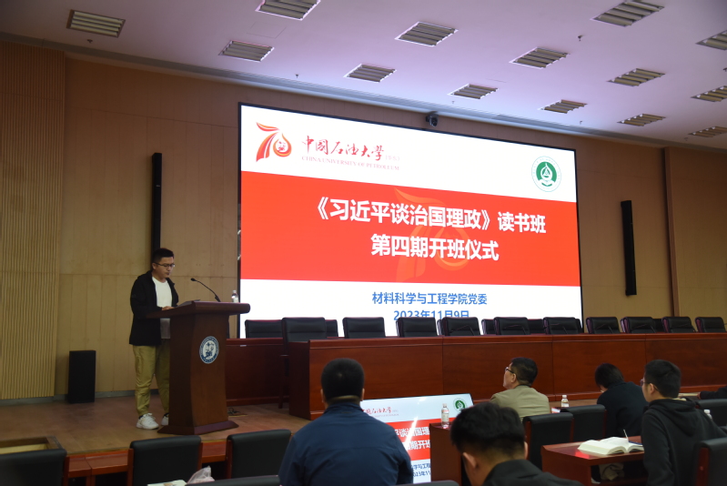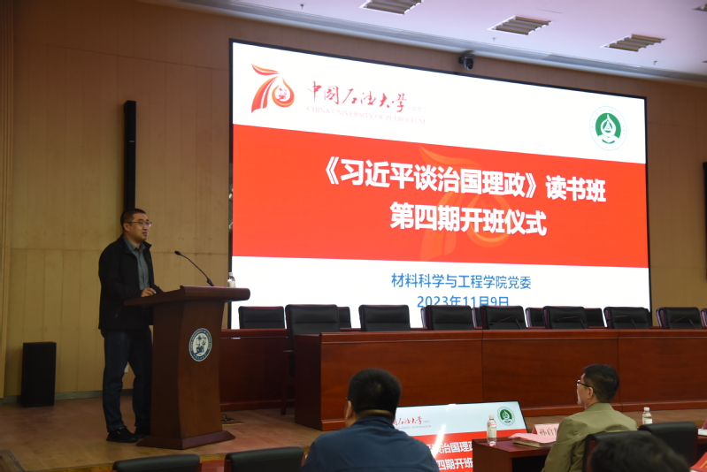 刘少伟宣读读书班成立文件。随后,读书班老学员代表、材料博士员工党支部书记马刚和新学员代表、2023级研究生第一员工党支部书记关佳怡分别发言,分享了他们对参加读书班学习的感悟和期待,号召全体学员珍惜学习机会,扎扎实实读原文、学原著、悟原理,做到真正用党的创新理论来武装头脑、指导实践、推动工作。