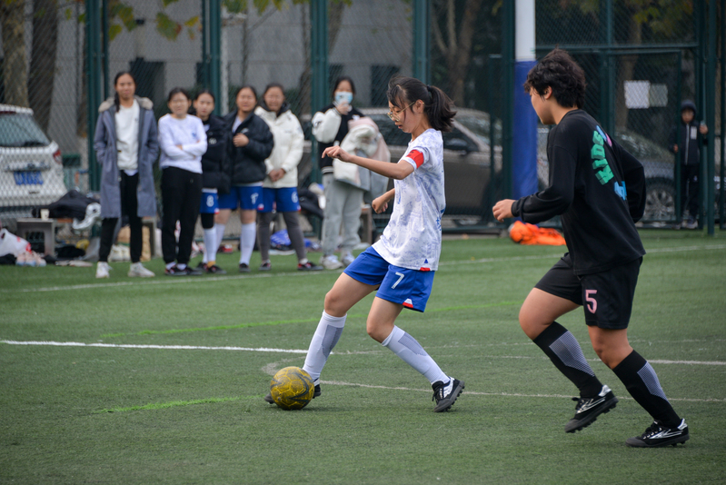 在前五场小组赛中,队员们分别以7:2、4:0、8:1、4:1、6:3的绝对优势取胜,展现出良好的竞技状态和敢打敢拼的精神风貌。在小组赛最后一场比赛与经管学院女足的对战中,尽管开局以2:3的比分落后,但是女足队员们镇定自若,冷静寻找突破口,随后队员王涓洁进球追平比分,我方队员士气大振,逐渐掌握了比赛的主动权,一鼓作气以6:3的比分取得胜利,以小组第一晋级决赛。