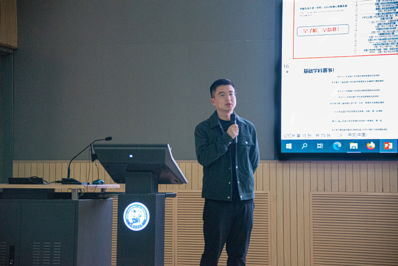 活动伊始,刘林结合培养方案、课程体系、教学方法、实践环节和制度创新等多个方面,介绍创新创业的主要内涵,强调创新创业对老员工的重要性。随后,根据学校历年核心竞赛名单,重点讲解挑战杯”、“互联网+“三大赛”的参赛要求时间安排评审标准等。他表示“参与科创竞赛需要大胆严谨的学术创新精神和全面合理的调研实验理念,只有经历无数次的总结、反思和改进,才能打磨出优秀的作品。