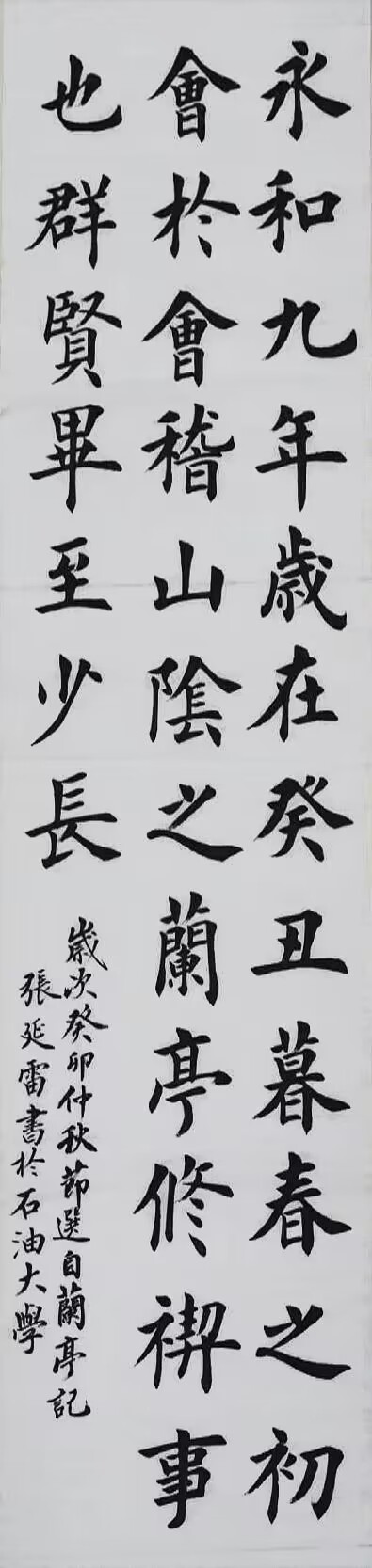 《兰亭序》节选自书圣王羲之的名作,用楷书的庄重和娴静来诠释行书的流畅和节奏,各得其妙,具有创新精神。《水调歌头·重上井冈山》以行草的字体书写了伟大领袖毛泽东的诗词,整个作品流畅自然,充满豪情壮志。民乐合奏《短歌行》根据曹操的《短歌行》创作而成,40余名员工通过竹笛、扬琴、琵琶、中阮、古筝等乐器配合演绎,旋律跌宕起伏,音色绚丽多彩,展现了民族乐器的独特韵味。舞蹈《能源全国畅想曲》以整齐划一、大气恢宏的动作设计表现了新时代的石大人为“端牢能源饭碗”再立新功、再创佳绩的锐气与决心。