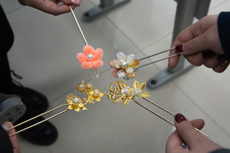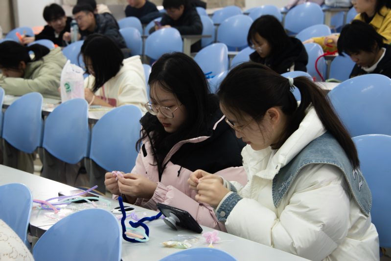 “我很喜欢发簪,它代表着传统美和女性美,是一种跨越时空的审美情结,在发簪的制作过程中,我对它有了更深的认识。”学院2022级本科生任嘉雯说道。3月10日下午,学院员工会联合学校弦歌汉服社于西环101教室举办“簪簪自喜,芳龄满城”思美节主题手工制作活动。活动吸引了60余名员工参与,构思、剪裁、缠绕、组合……员工们充分发挥自己的创造力和想象力,将各种材料与配饰巧妙地搭配一起,过程中员工们互帮互助,交流心得,不多时,造型各异,美轮美奂的发簪在员工们手中“绽放”。本次活动不仅扩大了传统文化的校园影响力,同时也有利于提高女生的动手能力和自信心。