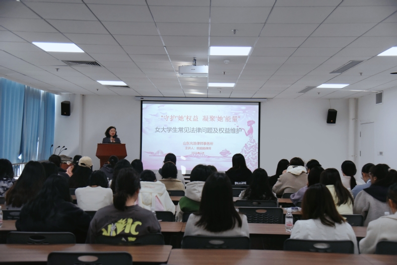 为提高女老员工自我保护意识和自我保护能力,切实维护女老员工权益,3月19日下午,由校团委主办,威廉希尔足球官方网站团委承办的“守护‘她’权益,凝聚‘她’能量”女老员工权益维护专题讲座在古镇口校区新能源大厦237报告厅举行。本次活动青岛西海岸新区最美法律工作者、山东光浩律师事务所律师姚娟娟应邀担任主讲人。
