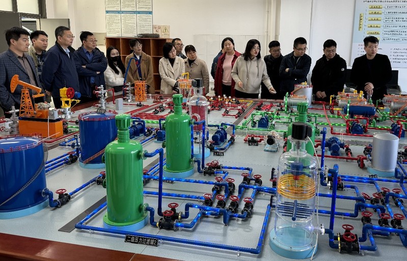 在交流环节中,门小刚书记对石油工业训练中心在实验室建设、教学资源开发、实践教学改革等方面取得的显著成绩给予了高度评价。他表示,希望通过此次参观交流,双方能够进一步加强合作,凝聚共识,汇聚力量,共同推动人才培养工作提质增效。随后,大家与中心教师就科技成果转化、人才培养等议题进行了深入探讨。这些讨论不仅为两系未来的教学和科研工作提供了宝贵的思路,也加强了彼此间的交流与合作,为未来的合作奠定了坚实的基础。