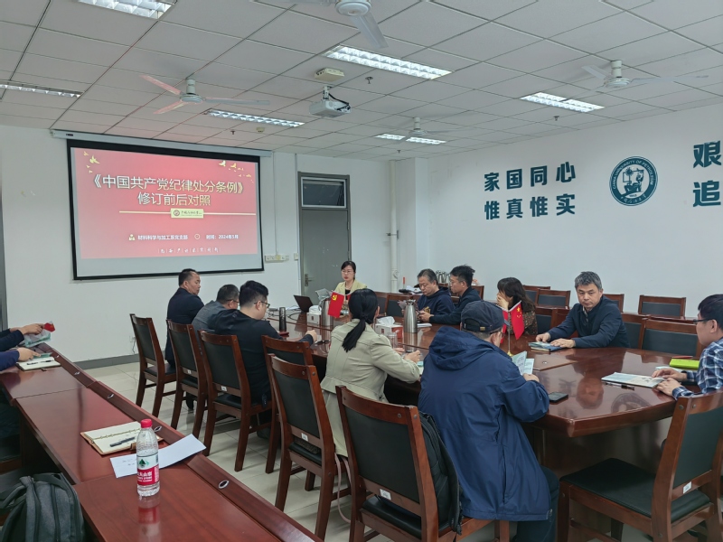 5月10日,材料科学与加工系党支部在工科E510会议室召开全体党员大会,支部书记李美艳围绕学习新修订的《中国共产党纪律处分条例》(以下简称《条例》)向全体党员讲授专题纪律党课,推动党纪学习入脑入心。