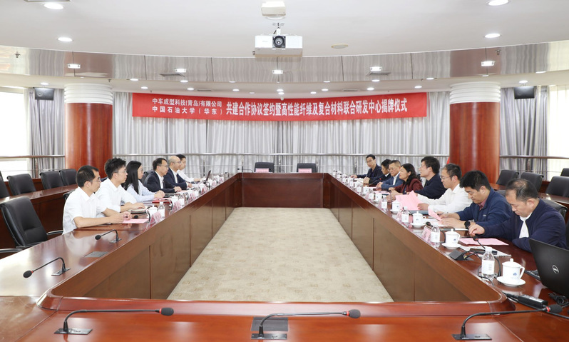 10月14日,中车成型科技(青岛)有限公司总经理史磊一行来校访问。副董事长戴彩丽与来宾座谈交流,校企双方签署共建合作协议,并举行高性能纤维及复合材料联合研发中心成立揭牌仪式及中车成型科技首席战略顾问聘任仪式。