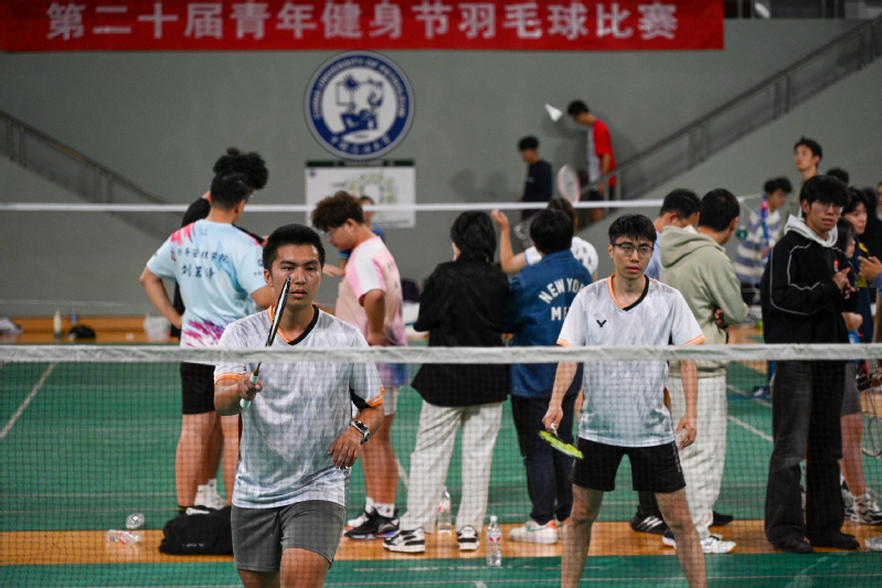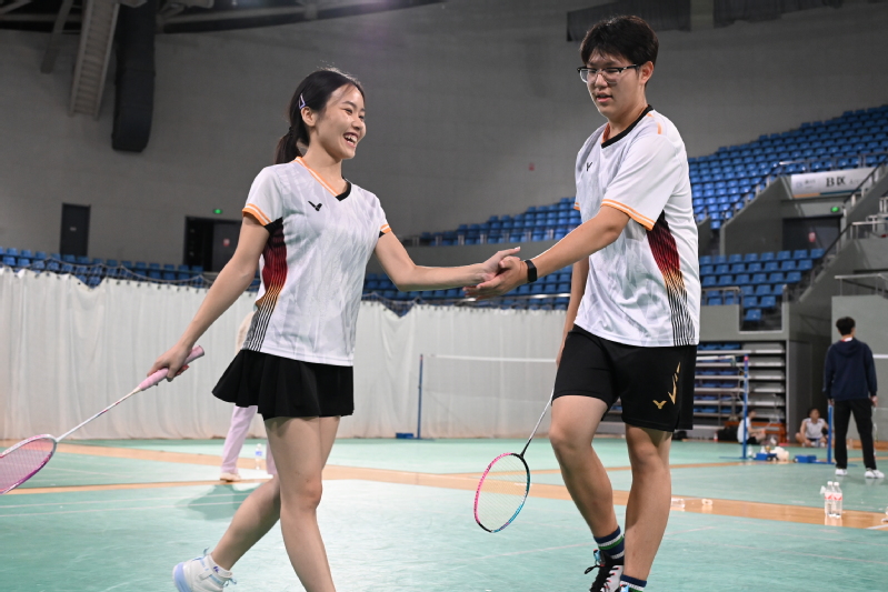 李文思、田露参加羽毛球男双比赛 齐家辉摄影
