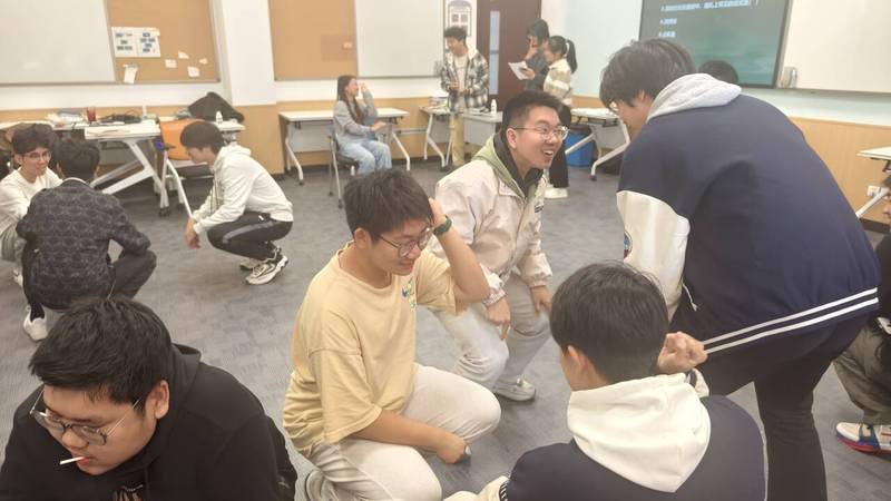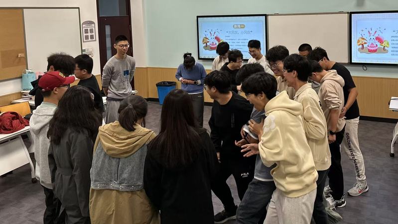 丰富多样的游戏环节将活动推向高潮。“成长三部曲”中,班级成员踏上一段别样的成长旅程,从“鸡蛋”到“小鸡”再到“凤凰”的蜕变过程,充满了挑战与惊喜。“四目相对”游戏里,眼神的交汇传递着无声的默契与情感大家真切领略到互相之间眼神交流的奇妙,那种无需言语的默契真的令人陶醉;“狼人出来抓人了”使现场气氛紧张刺激又充满欢乐,欢呼声和笑声此起彼伏。“大风吹,小风吹”游戏中大家反应敏捷,争分夺秒寻找新座位,进一步增进了彼此的了解;“故事接龙”则充分激发大家无限的想象力和创造力,一个个奇妙的故事在大家的思维碰撞中精彩诞生。